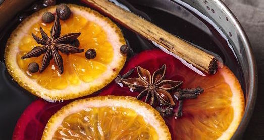 In composition, it’s as varied as the names it’s called by. Basically, it’s some proportion of wine, spices, sweetener, and fruit, heated and steeped. In some instances, other alcohols – brandy, bourbon, cognac, vodka, akavit, rum – are added to bring another kind of heat.