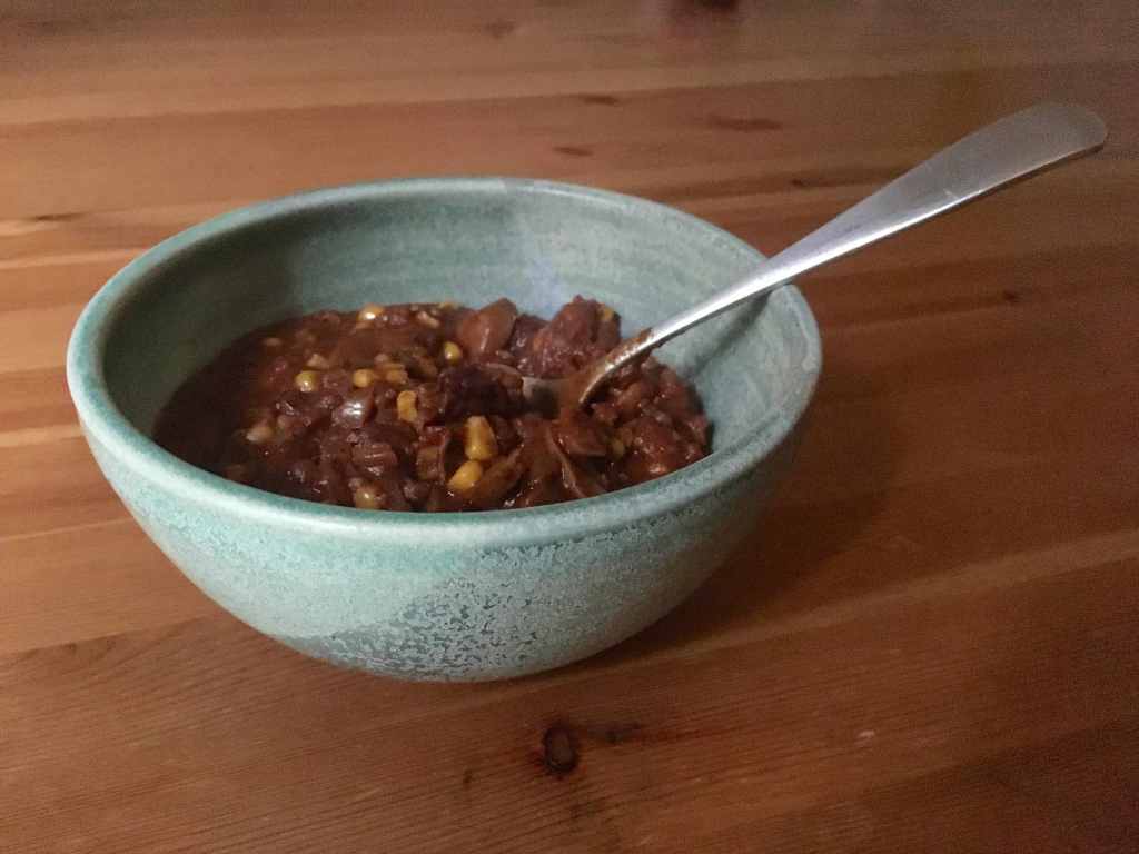 1. Must be in the genes….we had chili yesterday as well! Truly hits the spot after a day of cross country skiing . In addition to lots of garlic and beans, our vegan version features wheatberries and (when I have it) some diced yams add a nice orange bling. Using coffee for the broth is a new idea for me, but I typically add beer. I imagine there must be thousands of chili recipes out there. Eat hearty!